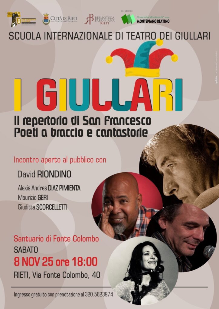 L'evento prende il via grazie all'impulso del Comune di Rieti, al prezioso contributo del Comitato Nazionale per la celebrazione dell’ottavo centenario della morte di San Francesco d’Assisi e, grazie anche al patrocinio ed al sostegno attivo della Comunità Montana Montepiano Reatino. L'Ente montano, ribadendo la sua missione di promozione e valorizzazione del patrimonio storico e culturale dell'area, riconosce nell'iniziativa dei Giullari uno strumento straordinario per rafforzare l'identità e l'attrattività culturale del Montepiano.